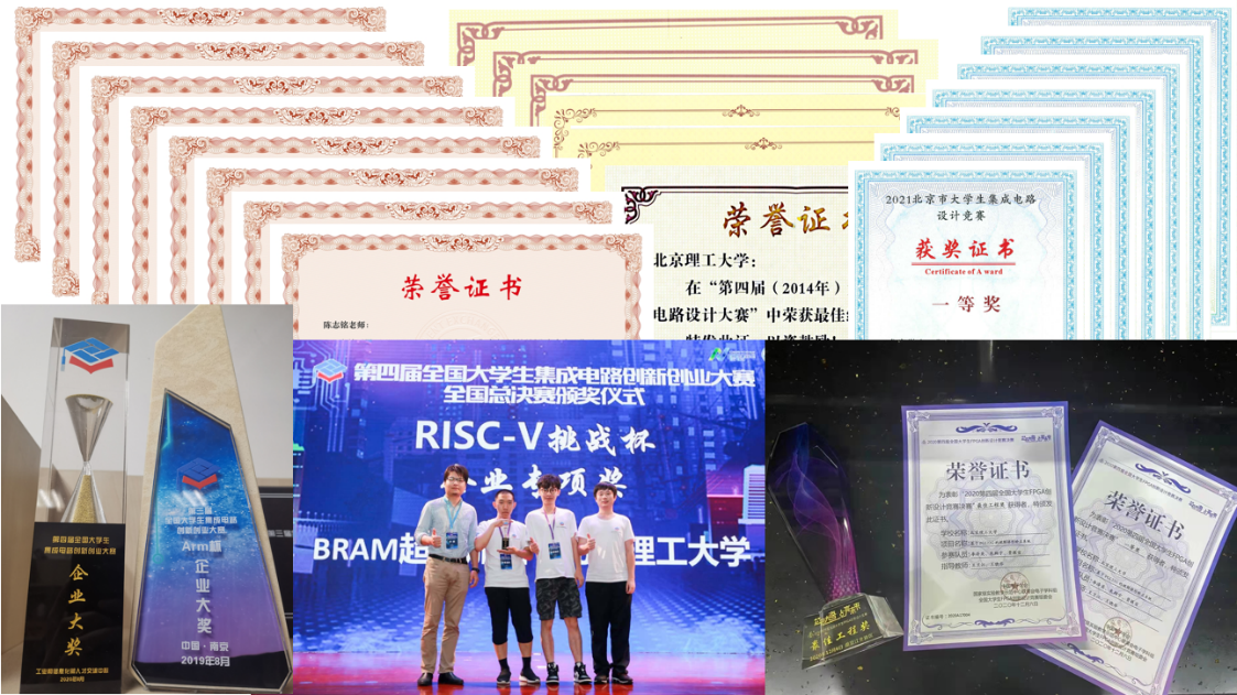 团队于2011年成立了微系统与集成电路俱乐部,依托俱乐部讲座交流活动、大学生创新训练计划、开放性实验课程、各类集成电路学科竞赛培训等,由专业教师指导循序渐进带领学生实践和创新。俱乐部已连续指导近千名学生,在全国集成电路创新创业大赛、北京市集成电路设计竞赛等多个专业竞赛中,累计获得包括国家级竞赛第一名(企业大奖)在内的省部级以上获奖315项,近年来更是屡创参赛人员和获奖人数的新高,连续多年在获奖人数和级别上名列全国高校前茅。