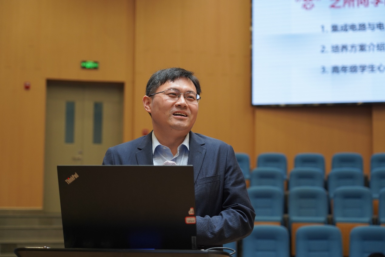 李斌介绍了本科专业培养方案制定过程和课程设置情况,并详细讲述了集成电路与电子类专业的教学特色和主要内容。毛著章分享了本科时期的学习经历,以学生角度介绍了学院的培养特色和亲身感受。