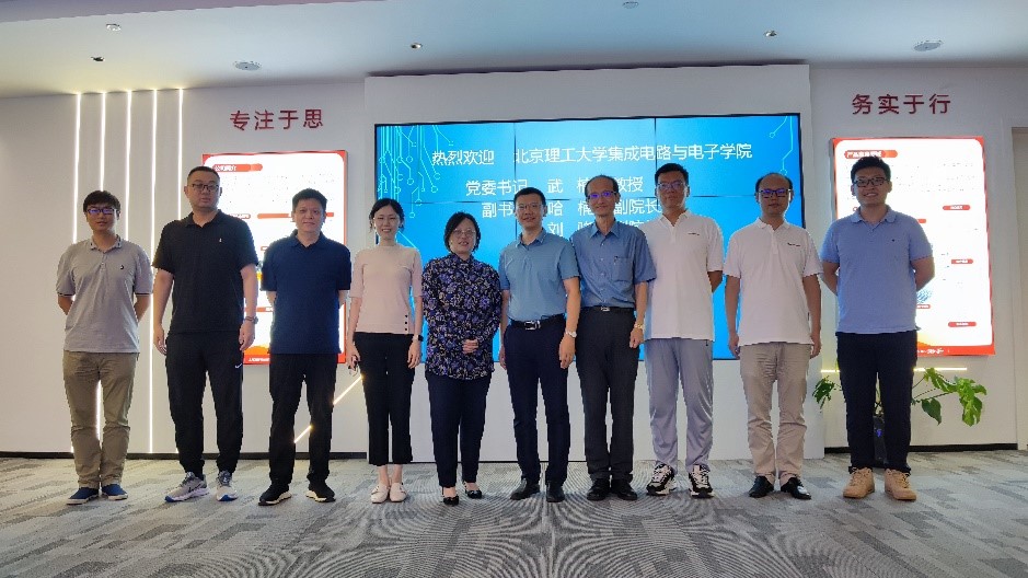 在苏州市,学院一行沿着习近平总书记的足迹,参观了华兴源创科技股份有限公司和苏州工业园规划展示馆,并与元禾控股副总裁、苏州工业园区集成电路产业投资发展有限公司总经理张斌陪同参观,元禾控股投资促进部总经理、北理工校友邓达力等围绕科技成果转化、师生创新创业、校企合作等方面开展交流座谈。在中科亿海微电子科技有限公司,学院一行参观了公司展厅、实验室,并与营销副总裁赵军辉、执行副总裁王永等开展了深入交流。