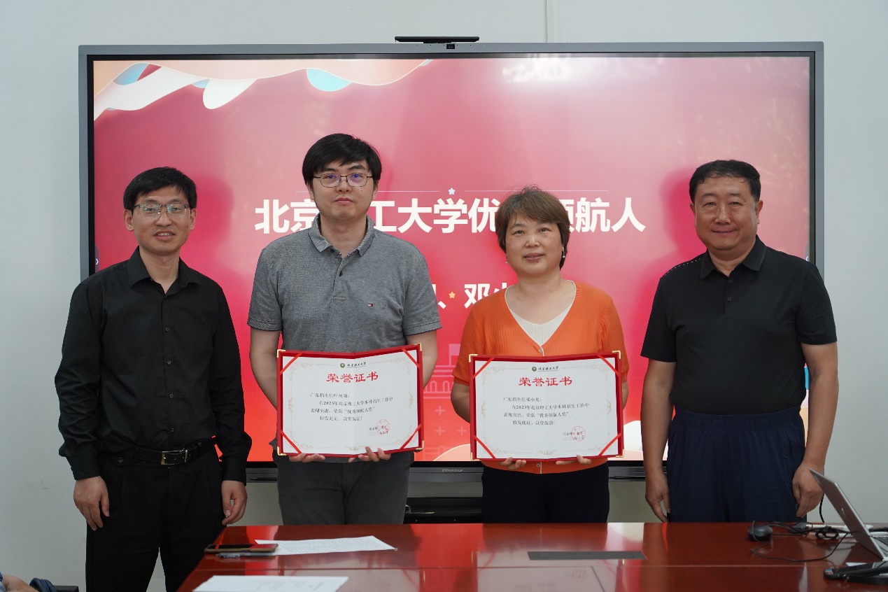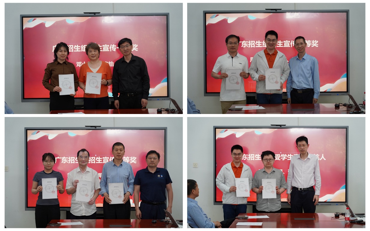 学院班子成员为获得2023年“广东招生组招生宣传先进个人”“学生最喜爱的领航人”的教师颁发荣誉证书。