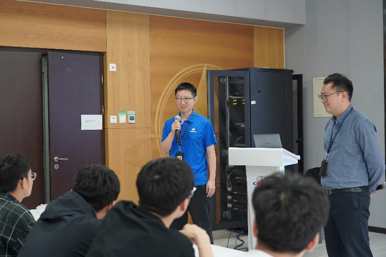 付家骏带领同学们参观了民用产业展厅,详细介绍了二十三所辉煌的历史沿革和肩负的责任使命,分享了研究所的发展现状、研究实力和招聘需求,为即将步入社会的同学们提供了宝贵的职业信息和择业启示。
